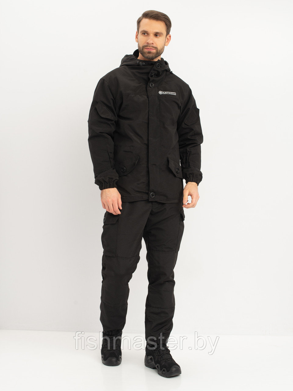 Крой костюма подчеркивает фигуру и не стесняет движений. Прочная ткань с водооттакливающей пропиткой и флисовой подкладкой обеспечивают комфорт при температурах от -5 до +15.