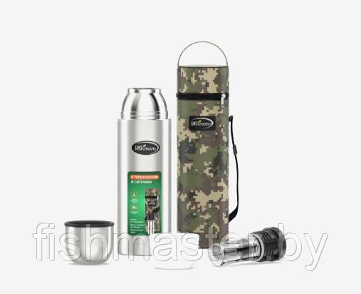 Термос из нержавеющей стали 18/8 (AISI 304) с ситечком для заваривания и пробкой-контейнером. Пробка с дополнительной изоляцией и функцией «термоконтроль» позволяет наливать напитки без полного откручивания пробки под любым углом. Ситечко из высококачественной нержавеющей стали 18/8. Дополнительная чашка из прочного пищевого пластика. Термочехол из прочной камуфляжной ткани защищает термос от повреждений и повышает его термозащиту.